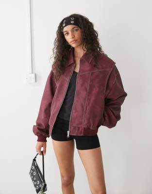 Esclusiva Lioness - Vista - Bomber in pelle sintetica rosso vinaccia con cuciture a contrasto