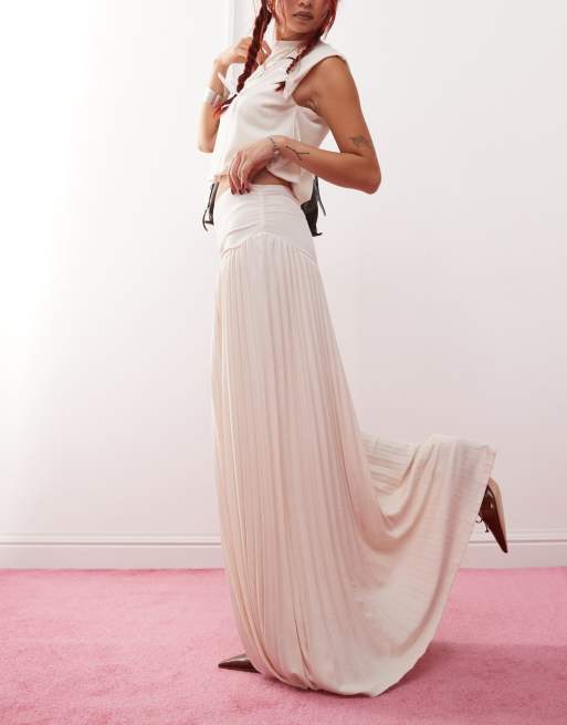 Lioness - Coordinato avorio con crop top squadrato senza maniche e gonna lunga