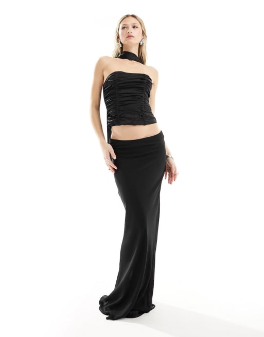 Lioness - Coordinato nero con top a fascia in raso e gonna lunga in chiffon