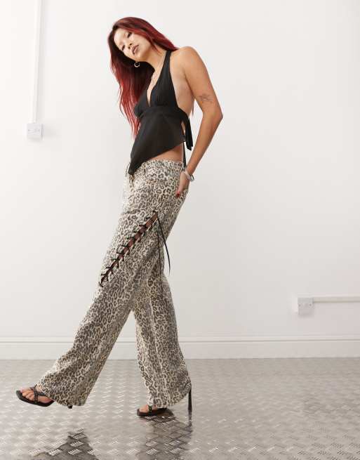 Lioness - Jeans con nastri allacciati e stampa leopardata sbiadita
