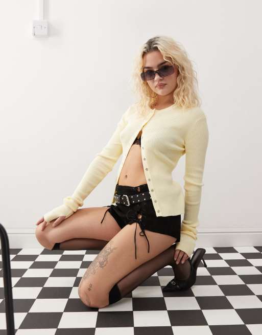 Lioness - Top a maniche lunghe in maglia giallo burro con bottoni a pressione