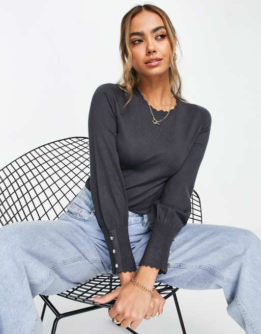 Lipsy - Maglione grigio ardesia con bordi smerlati