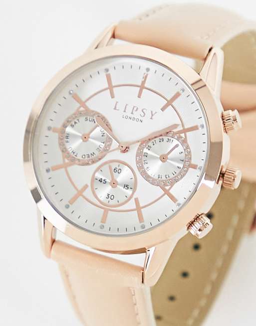 Lipsy - Orologio oro rosa con quadrante ampio e cinturino in pelle