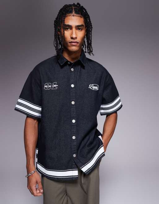 Liquor N Poker - Camicia oversize stile college in denim grezzo