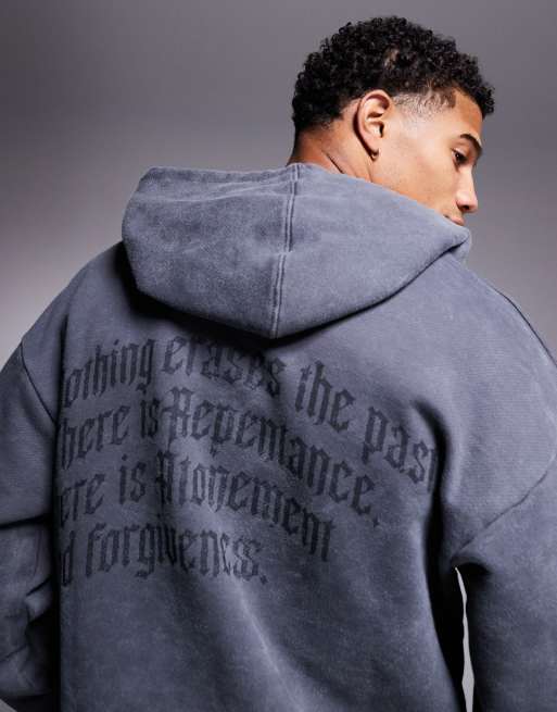 Liquor N Poker - Felpa con cappuccio oversize grigio chiaro lavaggio acido