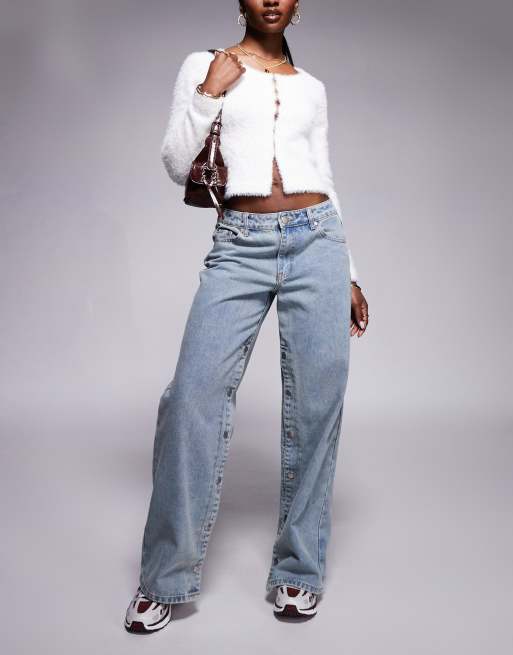 Liquor N Poker - Jeans extra ampi a vita bassa blu medio con bottoni a pressione
