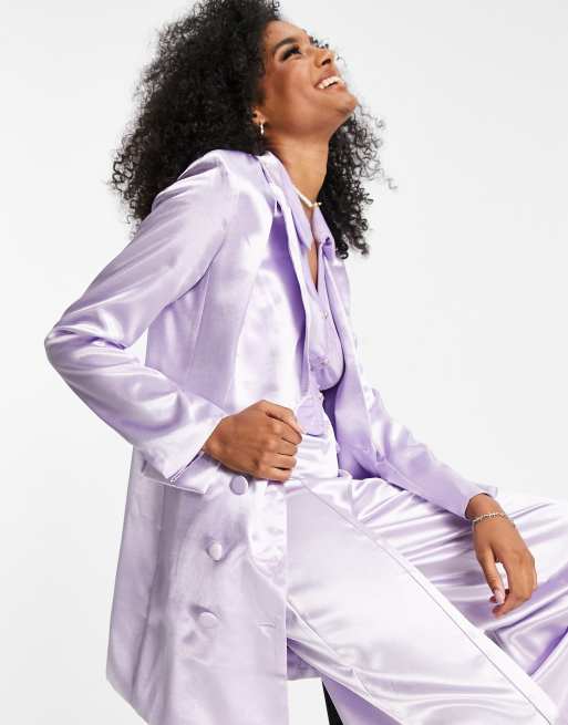 Liquorish - Blazer sartoriale doppiopetto in raso lilla dreamy