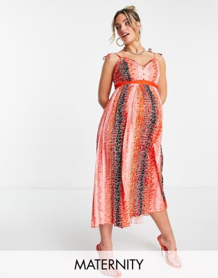 Little Mistress Maternity - Vestito con spalline sottili midi con gonna a pieghe e stampa animalier