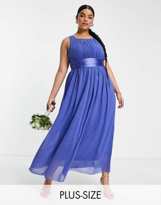 Little Mistress Plus - Vestito lungo da damigella in chiffon blu