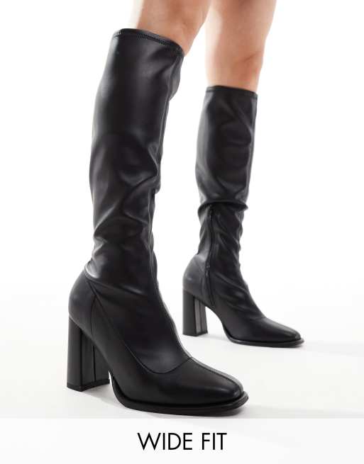 London Rebel - Paige - Stivali a calza al ginocchio neri a pianta larga