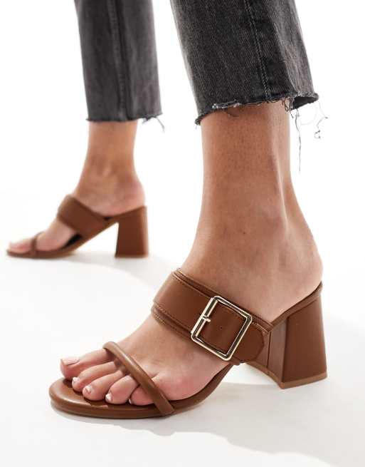London Rebel - Sandali color cuoio con tacco largo con fibbia