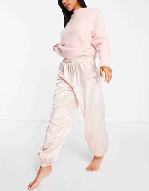 Lost Ink - Completo da casa oversize super morbido con top in maglia e joggers in raso rosa