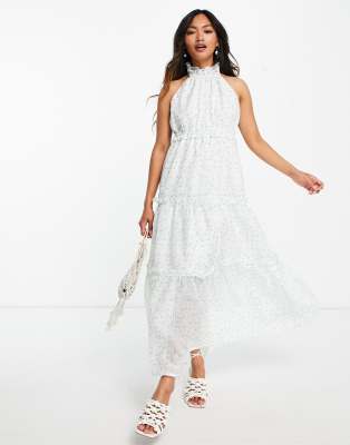 Lost Ink - Vestito con gonna al polpaccio a balze allacciato al collo a fiori