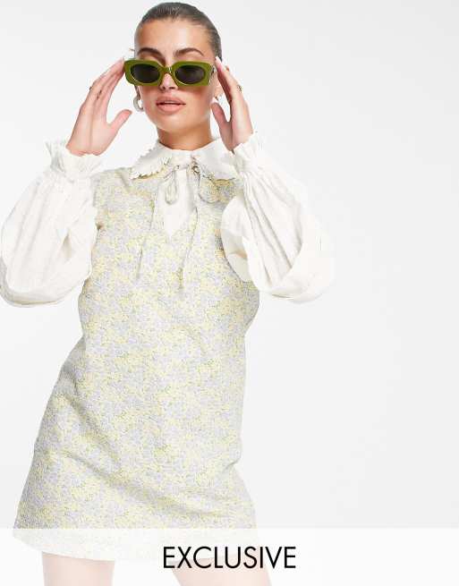 Lost Ink - Vestito corto a strati con colletto e stampa a fiori rétro