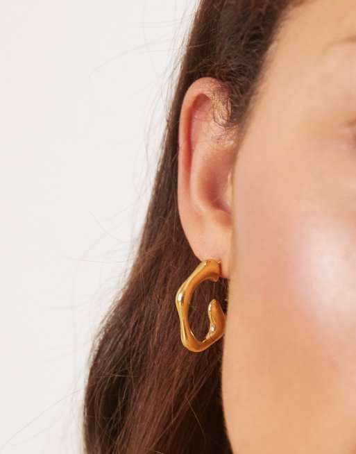 Lost Souls - Orecchini a cerchio in acciaio inossidabile placcato in oro 18 k effetto fuso