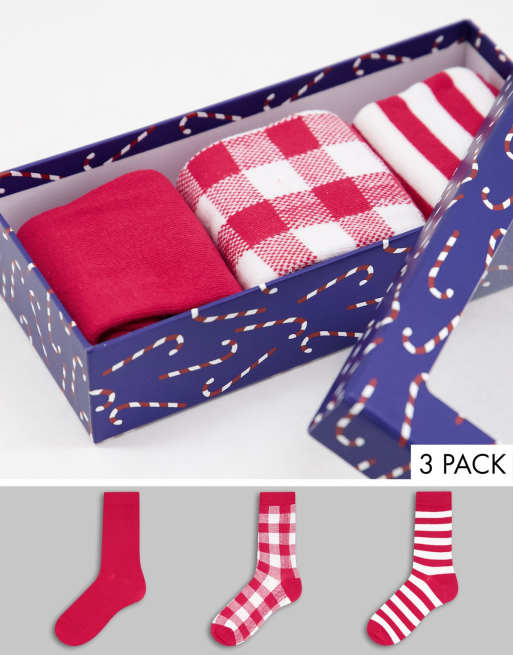 Loungeable - Confezione regalo da tre paia di calzini sportivi natalizi con bastoncino di zucchero