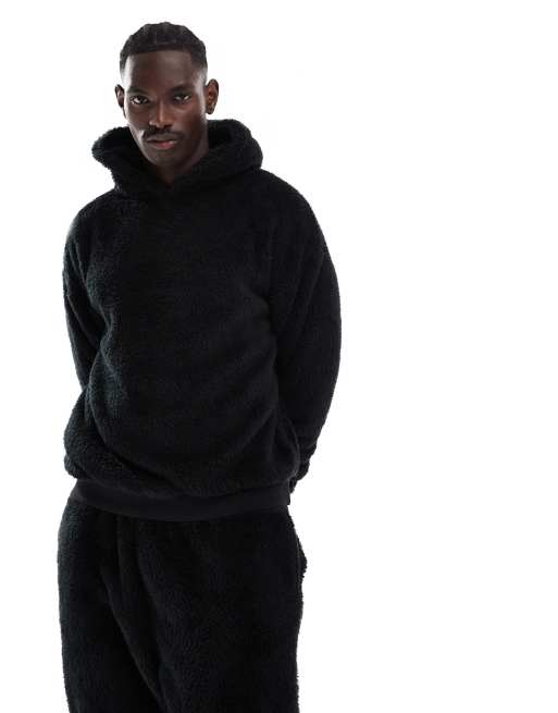 Loungeable - Felpa con cappuccio da casa in pile borg nera