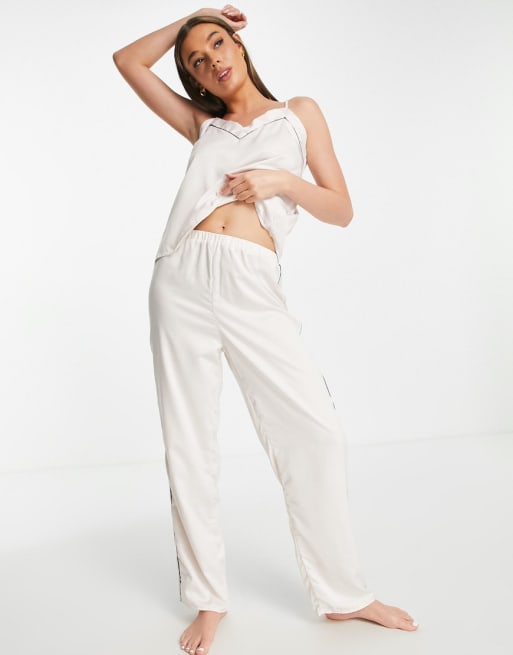 Loungeable - Mix and Match - Completo pigiama in raso color crema