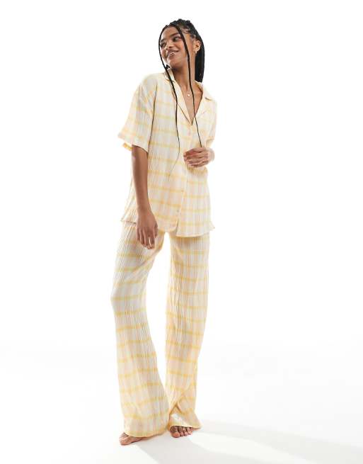 Loungeable - Pigiama classico giallo a maniche corte con pantaloni