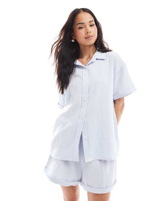 Loungeable - Pigiama corto in cotone blu a nido d'ape