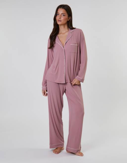 Loungeable - Pigiama tradizionale rosa a coste con camicia a maniche lunghe e pantaloni lunghi