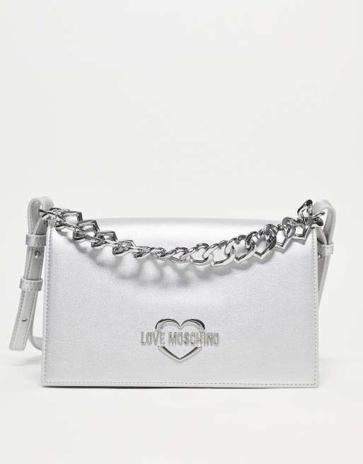 Love Moschino - Borsa a tracolla argento con catena a cuori