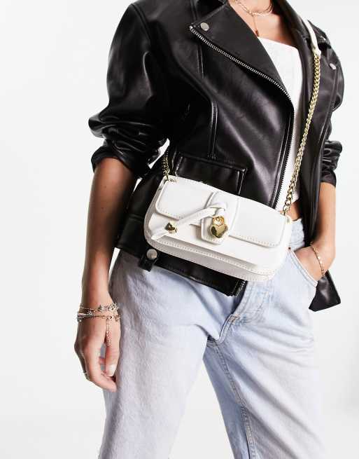 Love Moschino - Borsa a tracolla bianca con charm di cuore in rilievo