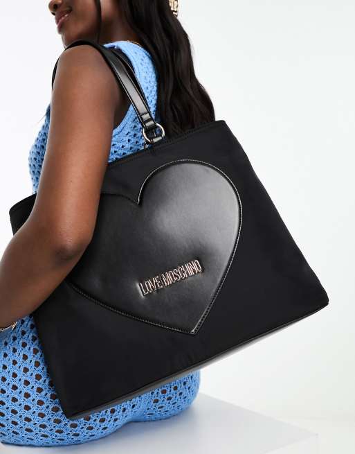 Love Moschino - Maxi borsa nera con cuore in nylon