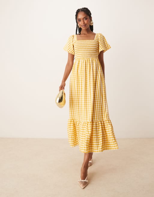 Lovedrobe - Vestito con gonna al polpaccio a maniche corte giallo a quadretti con scollo quadrato