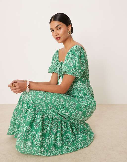 Lovedrobe - Vestito verde in pizzo con gonna al polpaccio e laccetti al collo