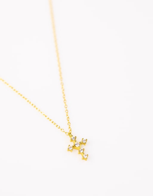 Lovisa - Collana in argento sterling placcato oro con ciondolo a forma di croce arrotondata con zirconia cubica