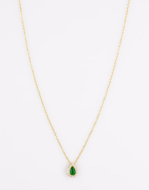 Lovisa - Collana in argento sterling placcato oro con ciondolo verde