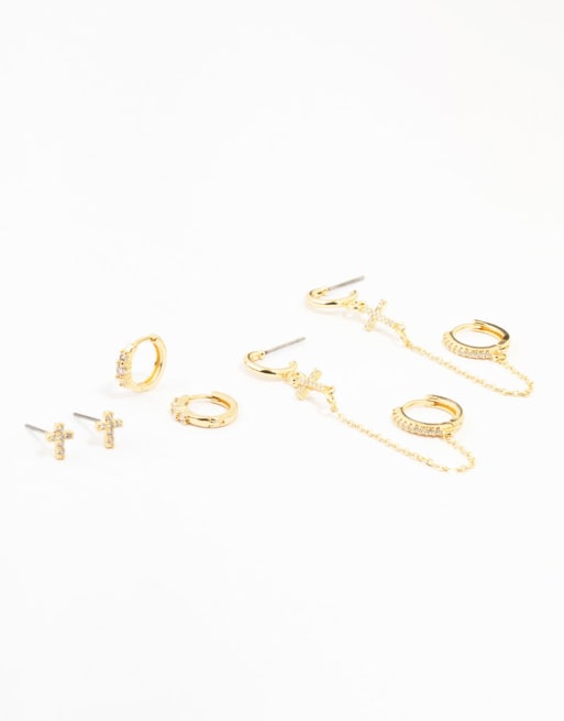 Lovisa - Confezione da 4 orecchini a bottone e catenina in ottone placcato oro