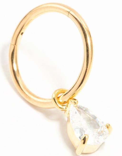 Lovisa - Piercing per l'ombelico ad anello dorato in titanio placcato in oro con ciondolo in zirconia cubica