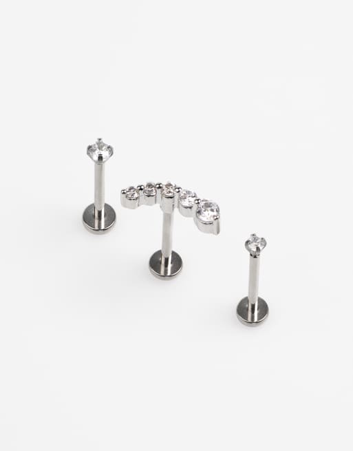 Lovisa - Set con piercing crawler piatti sul retro in acciaio chirurgico tonalità argento con zirconia cubica