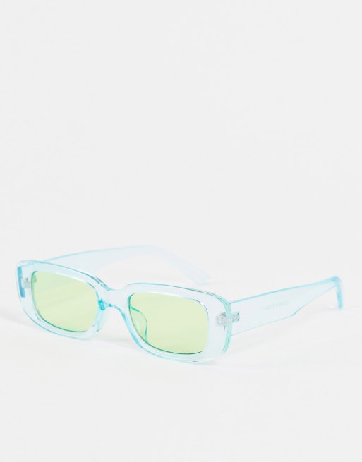 Madein - Occhiali da sole rettangolari blu con lenti verdi