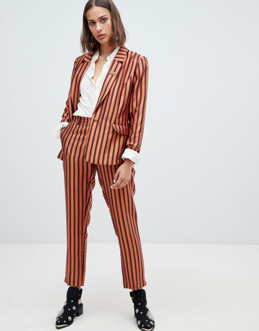 Maison Scotch - Coordinato blazer da abito a righe lucido e pantaloni da abito