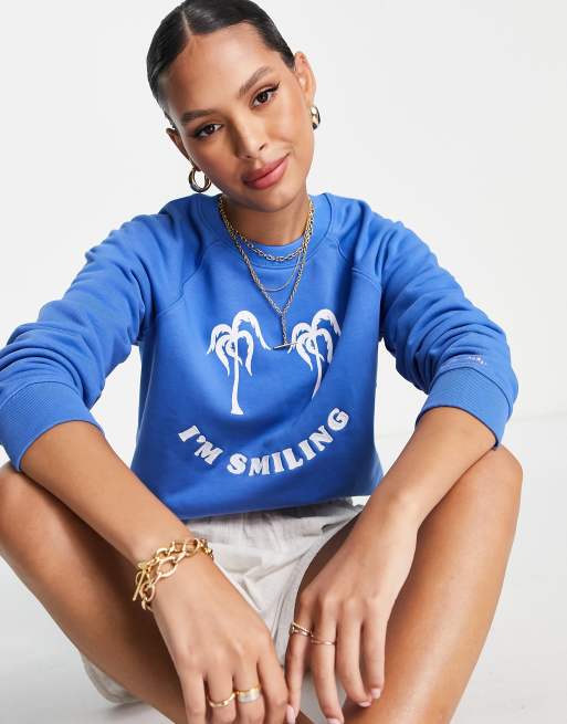 Maison Scotch - Felpa blu vestibilità classica con maniche raglan e stampa