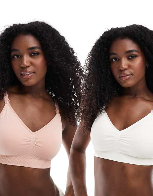 Mamalicious Maternity - Confezione da 2 reggiseni per l'allattamento bianco e rosa