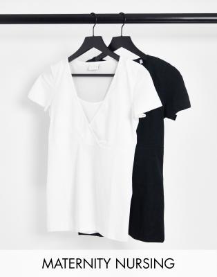 Mamalicious Maternity - Confezione da 2 top per l'allattamento in cotone - MULTI