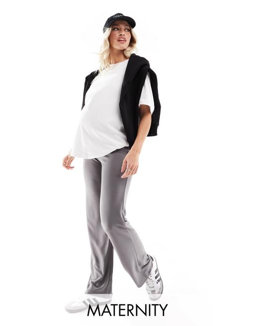 Mamalicious Maternity - Pantaloni a fondo ampio grigio scuro a coste con fascia sopra il pancione