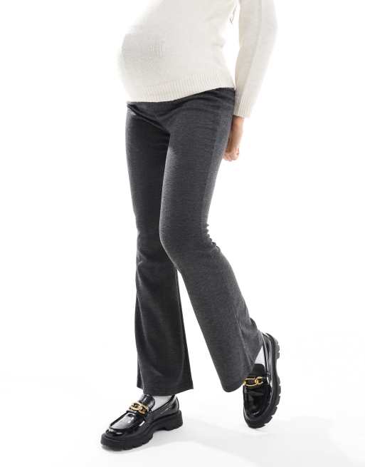 Mamalicious Maternity - Pantaloni a zampa in jersey grigio scuro con motivo a spina di pesce