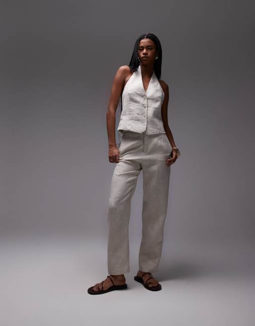 Mango - Abito sartoriale écru in lino