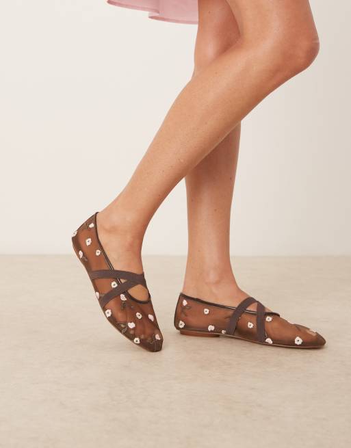 Mango - Ballerine marroni in rete a fiori