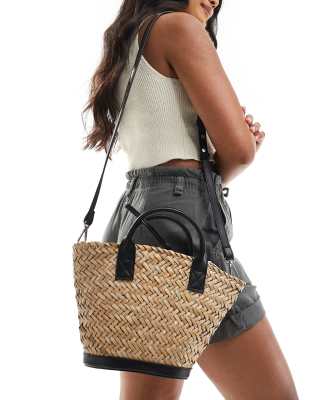 Mango - Borsa a tracolla intrecciata nera a secchiello