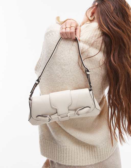 Mango - Borsa da spalla bianca con fibbia sul davanti