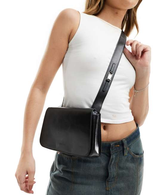 Mango - Borsa nera a tracolla in pelle