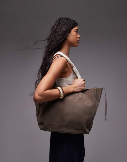 Mango - Borsa shopping da spalla in camoscio marrone chiaro
