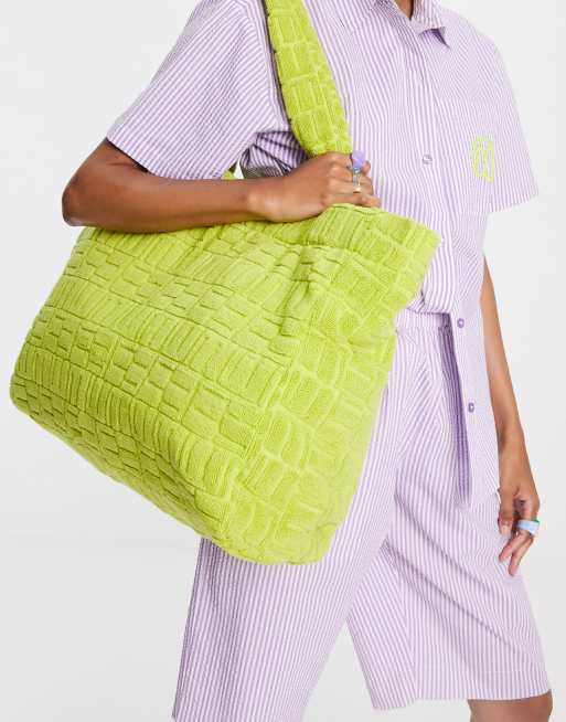Mango - Borsa shopping in spugna con monogramma verde lime