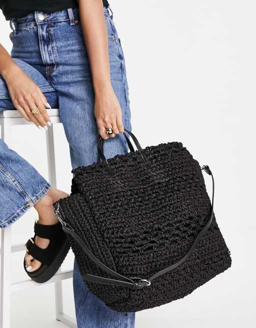 Mango - Borsa shopping nera lavorata a maglia con tracolla